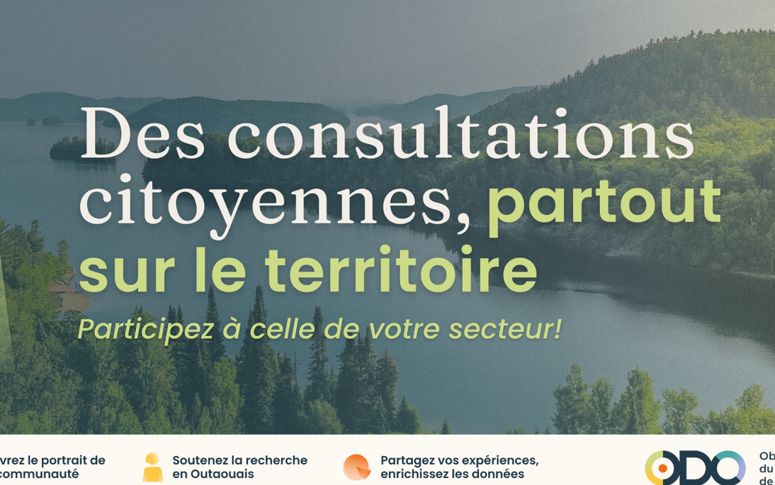 Dans le cadre du projet Portrait des communautés, l'Observatoire du développement de l'Outaouais (ODO) souhaite recueillir la participation des citoyennes et citoyens de Ripon, afin de mieux comprendre les réalités, les forces et les besoins de notre milieu.